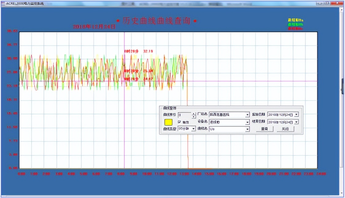 在人机界面中,可以直接查看配电室中各个设备的运行数据。