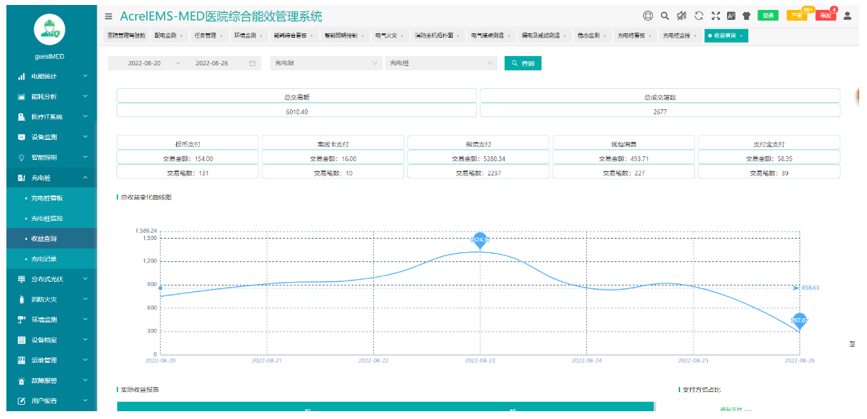 医院停车场有电动汽车和电动自行车,均需要提供充电桩。充电桩管理系统通过物联网技术对接入系统的充电桩站点和各个充电桩进行不间断地数据采集和监控,解决物业、用电管理部门的充电桩使用、监控问题。电动自行车充电可采用投币、扫码充电方式,电动汽车支持IC卡和扫码充电方式。远程充电桩系统可实时远程完成启动充电、强制停止、单价设置等控制指令,用户可通过APP、微信、支付宝小程序扫描二维码,进行支付后,系统发起充电请求,控制二维码对应的充电桩完成电动汽车的充电过程。同时对各类故障如充电机过温保护、充电机输入输出过压、欠压、绝缘检测故障等一系列故障进行预警;能够远程控制,提供财务报表和数据分析等功能。