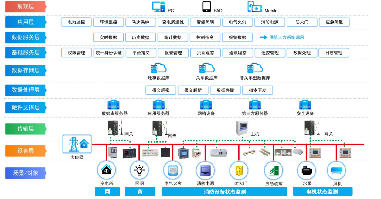 5)提供电能设施的监督控制功能:对于设备电能提供可以控制的参数,从而有助于明白设施的电能提供情况是否处于正常状态,另外,还应区分好消防电源以及非消防电源的有效性掌控及其管理。