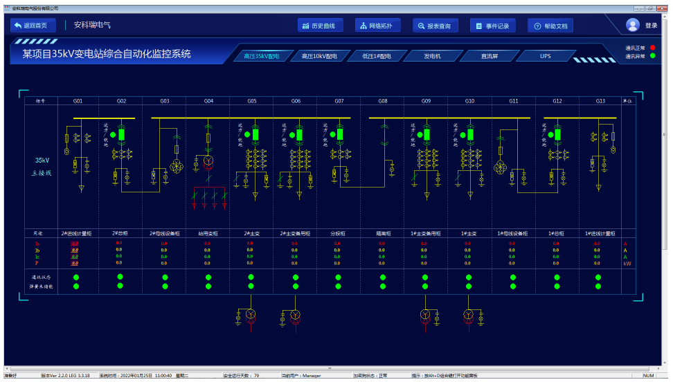 Acrel-1000变电站综合自动化系统,以配电一次图的形式直观显示配电线路的运行状态,实时监测各回路电压、电流、功率、功率因数等电参数信息,动态监视各配电回路断路器、隔离开关、地刀等合、分闸状态及有关故障、告警等信号。