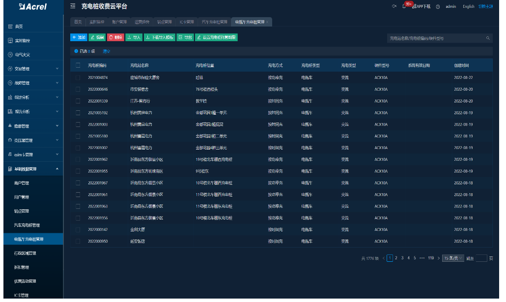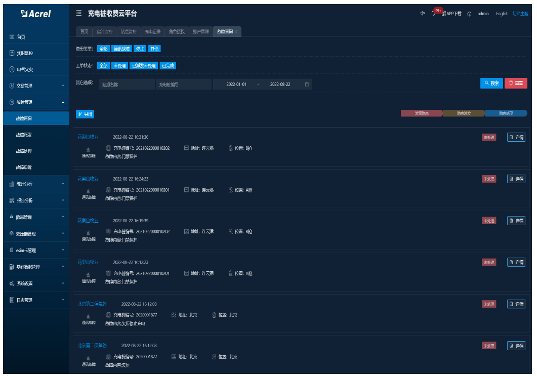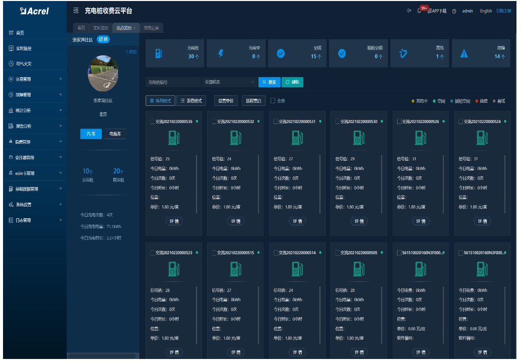 面向运维人员使用,可以对站点和充电桩进行管理、能够进行故障闭环处理、查询流量卡使用情况、查询充电\充值情况,进行远程参数设置,同时可接收故障推送