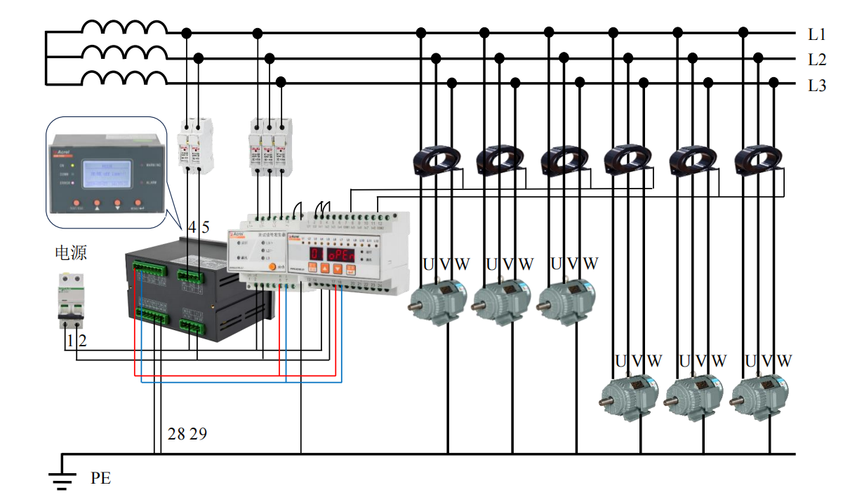 指示故障所在相线;支持手动启动定位用于测试通讯线路;采用CAN总线技术,方便与系统内其它设备进行数据交互。