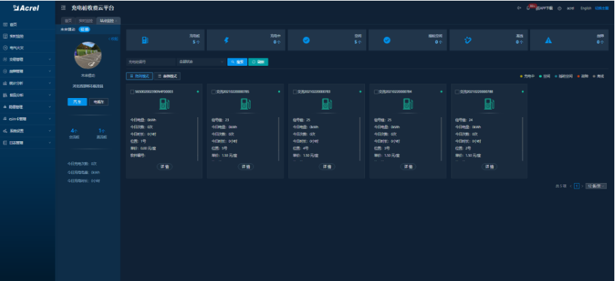 统计分析支持运营趋势分析、收益统计,方便用户以曲线、能耗分析等分析工具,浏览桩的充电运营态势。