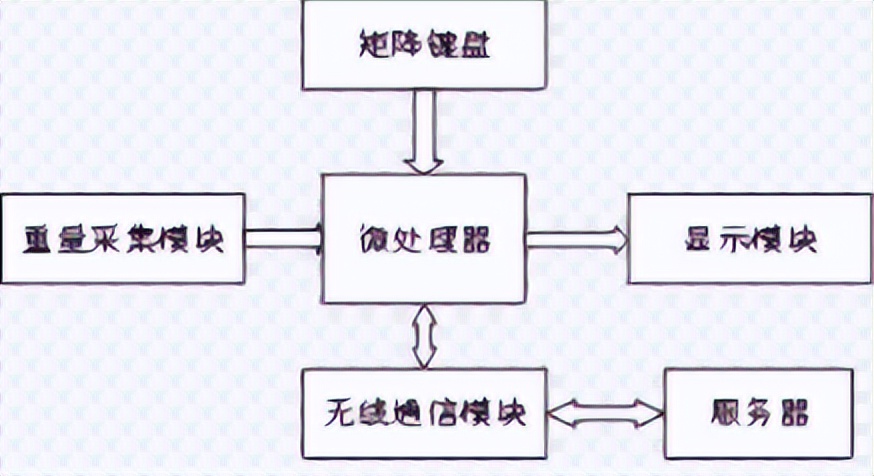 示,主要包括高性能微处理器、液晶显示模块(显示二维码充电信息等)、矩阵键盘(交互接口)、传感器模块以及无线通信模块。