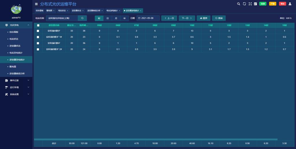 ●展示所选电站的时、日、月、年发电量统计报表。