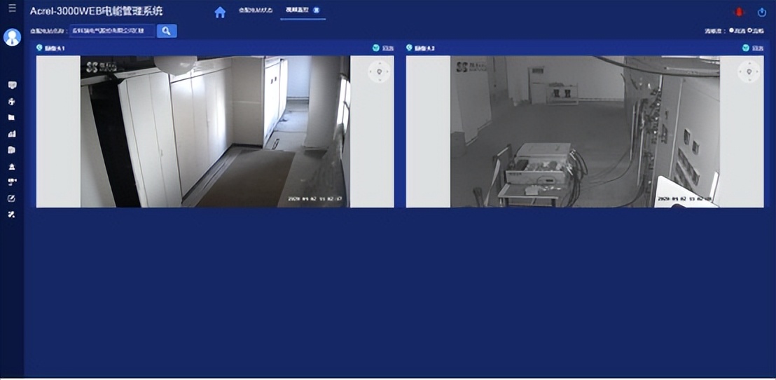 视频监控展示了当前实时画面(视频直播),选中某一个变配电站,即可查看该变配电站内视频信息。