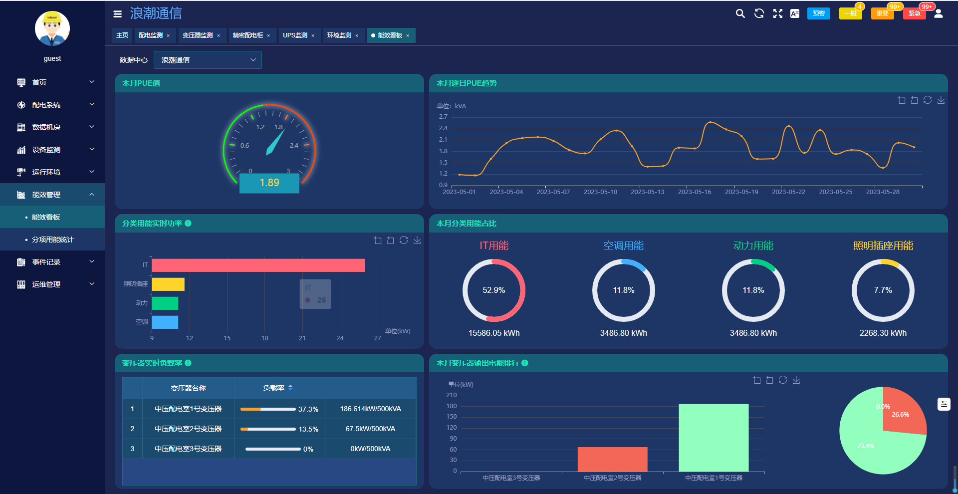 支持监控机柜内的温度湿度状态、线路状态、供电状态,保障核心设备的稳定运行,辅助分析机房的局部环境及能源应用情况。