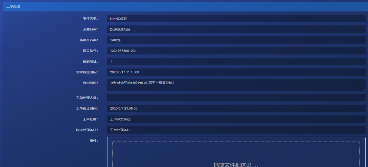 3)运维人员确认工单内容并对隐患进行处理,填写处理结果详情,上传现场图片等附件或进行二级派发;