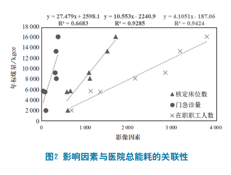 2.2 医院能耗与影响因素的关系