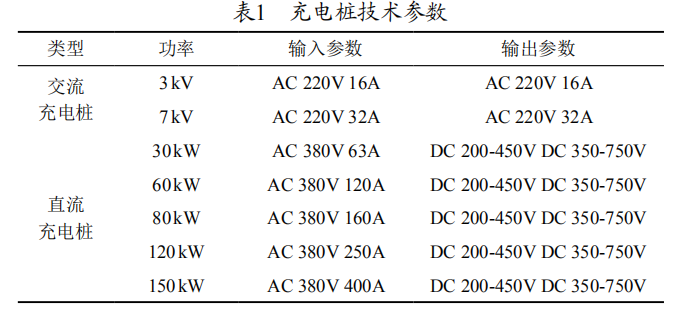 充电桩相关的技术参数可参考下图(表1)。