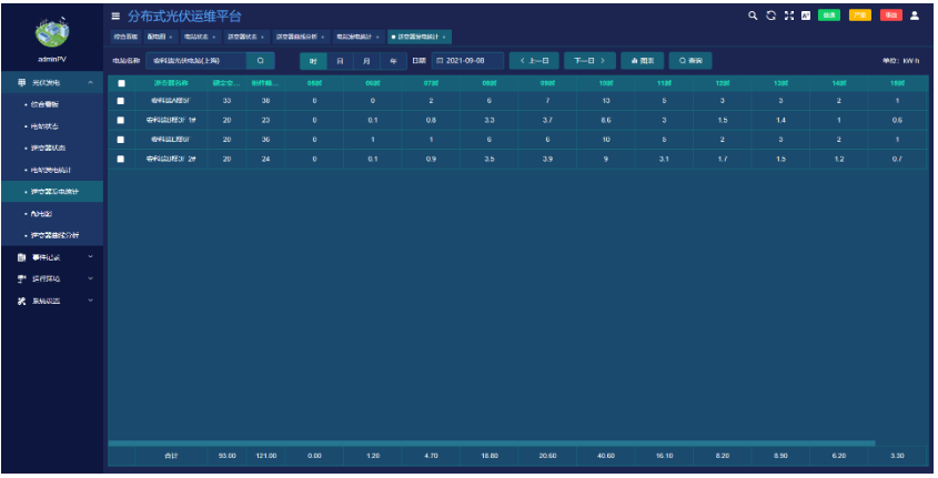 ●展示所选电站的时、日、月、年发电量统计报表。