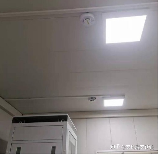 烟感是吸顶安装,一般装在柜子上方,每排10面柜子左右的话配3个左右;
