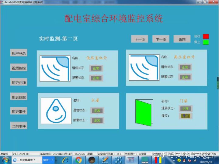 配电室综合监控系统人机界面友好,能够显示配电室设备的运行状态,实时监测配电室环境参数信息,如视频、温度、湿度、漏水/水浸、水位、有害气体和电参量等,实时显示有关故障、告警等信息。