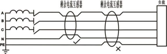 其余接线型式需要改造成以上两种型式使用,防止出线误动作或者不动作的情况。剩余电流互感器的选择应根据主回路的额定电流为参考选择,
