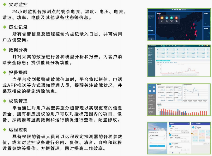 用户可以利用PC网页、手机APP、微信小程序、微信公众号等多种方式实现对平台的访问,查询包括系统信息、实时数据、报警记录等在内的各种信息,使用方便。利用该系统为用户提供的低成本专业服务,能有效提升企业的消防安全管理和电气设备安全水平,有效防范重大恶性火灾财产损失、尤其是重大恶性人员伤亡责任事故的发生。