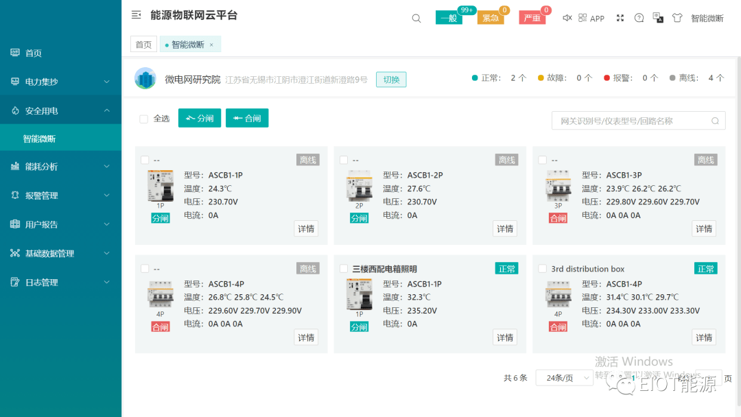 系统可接入用电精灵和智能微断等,用户可查询对应设备的状态;