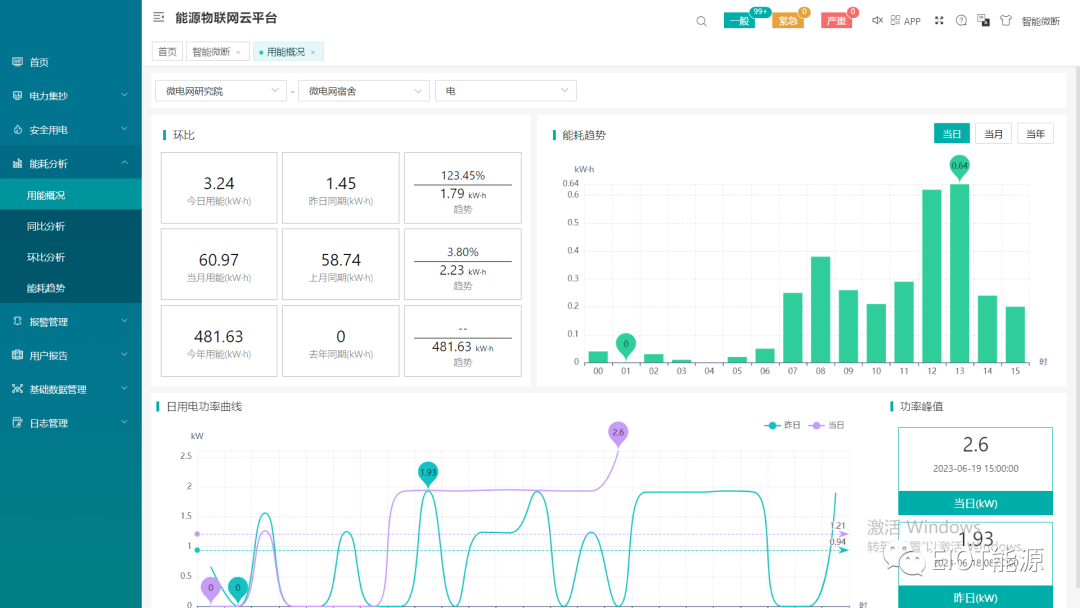 4. 效率提升:设备端,网页端,手机端三端设备状态同步显示,用户可随时随地监控设备,平台及时更新能耗环比统计分析,方便用户快速制定节能方案;