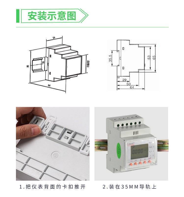 外置开合式互感器的导轨式多功能电力仪表,适用于冶炼、钢铁、电焊、半导体等高能耗行业的节能改造工程,也适用于分布式光伏并网柜的功率监测、电力需求侧管理等应用。具有无需拆一次母线、接线简单方便、施工安全,为用户节约改造成本等特点。它集成全部电力参数的测量(如单相或者三相的电流、电压、有功功率、无功功率、视在功率、频率、功率因数)以及电能监测和考核管理。同时它具有多种外围接口功能可供用户选择:带有RS485通讯接口,采用MODBUS-RTU协议可满足通讯联网管理的需要;带开关量输入和继电器输出可实现断路器开关的“遥信"和“遥控"的功能,采用LCD显示界面,通过面板按键来实现参数设置和控制,非常适合于实时电力监控系统。