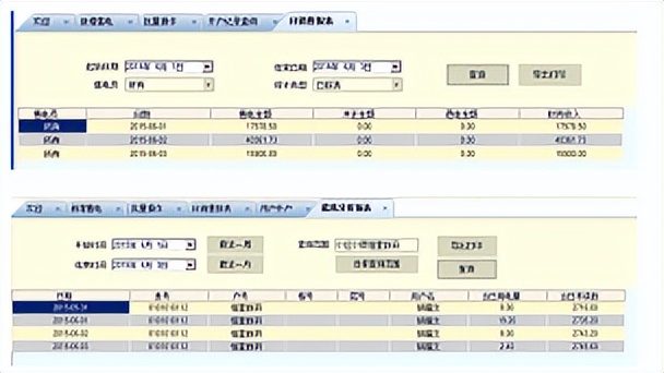 系统还提供了多个报表以供查询,分别是日/月/年财务销售统计报表、失联表/通讯管理机查询报表、能耗查询报表、实时报警/历史报警查询报表,支持导出。以下是财务报表和预付费表日用能查询报表: