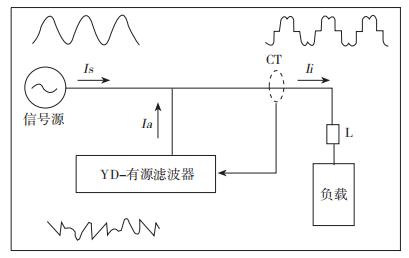 通过安装在低压母线上的电流互感器对母线电流进行采样,通过YD-APF有源滤波器内置控制器对采样信号进行分析,找出其中的谐波成分,然后控制晶闸管动作,产生一个与谐波电流大小一致、方向相反的电流反馈到母线上,抵消电网中的谐波