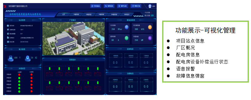 l 电能质量监测与治理装置信息互联,通过统一平台管理,方便用户同时监测电网电能质量以及治理数据;