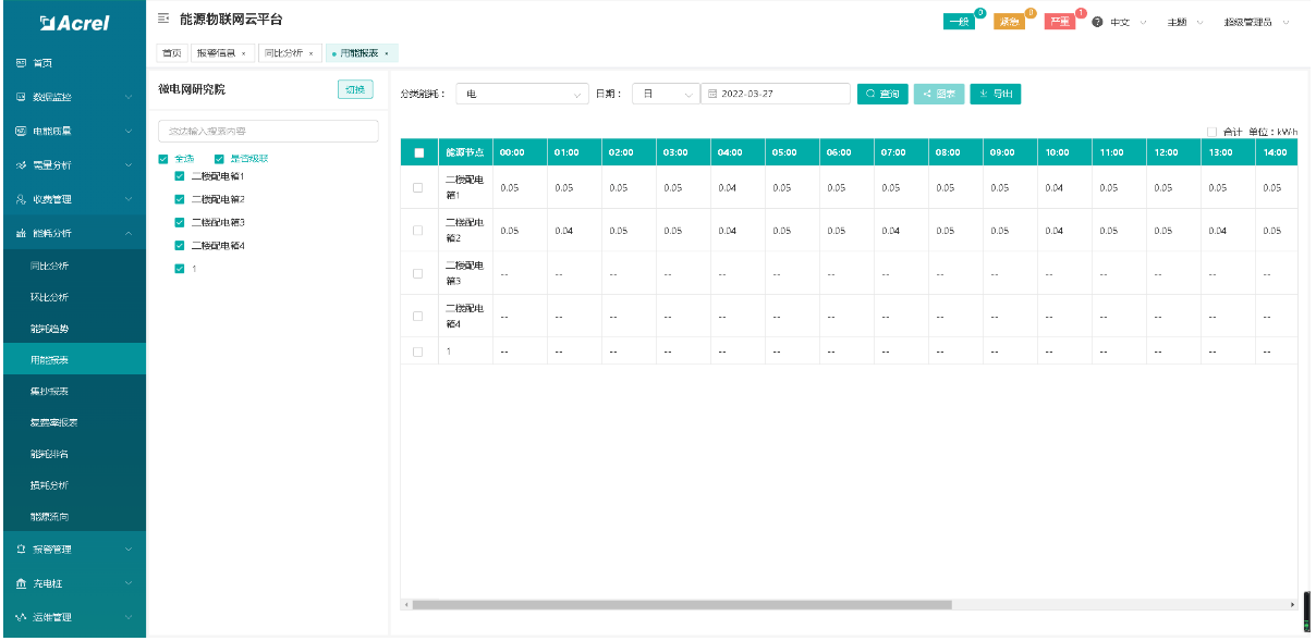 6)报表中心:提供售电、售水财务报表、用能报表、报警报表等查询,本系统所有的报表及记录查询,都支持excel格式导出。