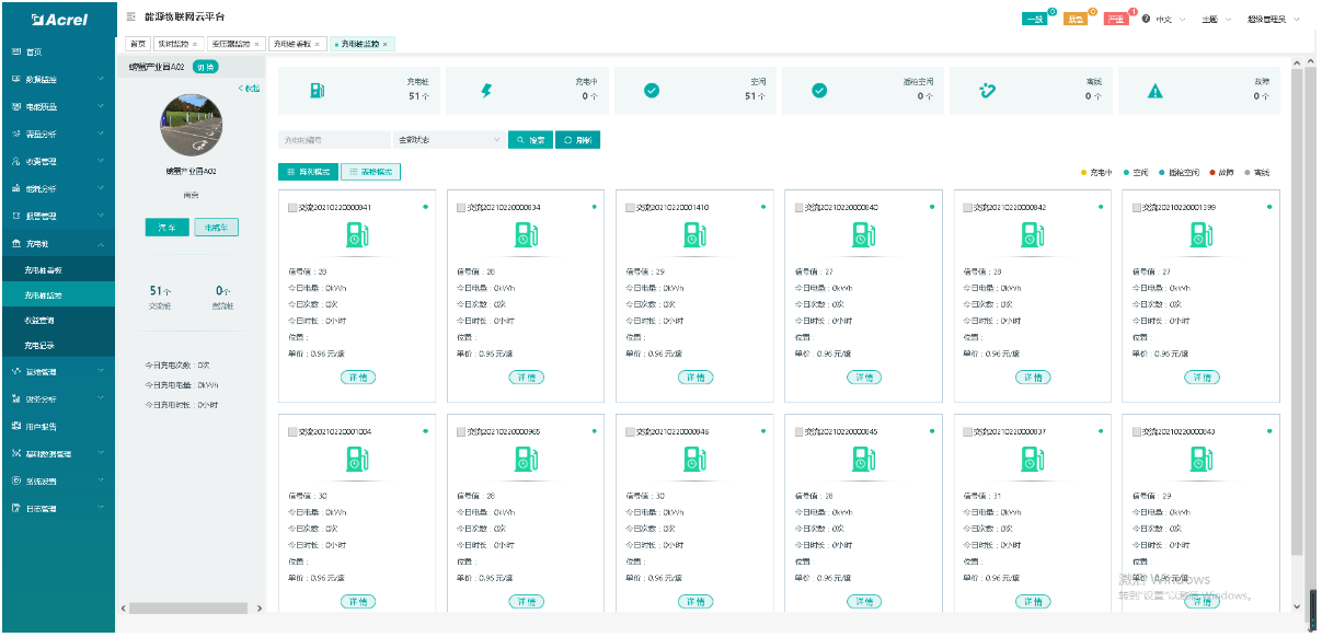 通过物联网技术,对接入系统的充电桩站点和各个充电桩进行不间断地数据采集和监控,同时对各类故障如充电机过温保护、充电机输入输出过压、欠压、绝缘检测故障等一系列故障进行预警。云平台包含了充电收费和充电桩运营的所有功能,包括城市级大屏、交易管理、财务管理、变压器监控、运营分析、基础数据管理等功能。