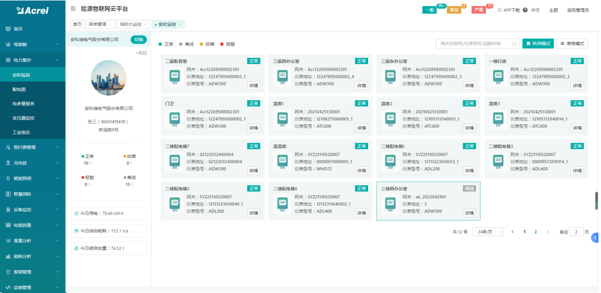 该平台提供数据驾驶舱、电气安全监测、电能质量分析、用电管理、预付费管理、充电桩管理、智能照明管理、异常事件报警和记录、运维管理等功能,并支持多平台、多语言、多终端数据访问。