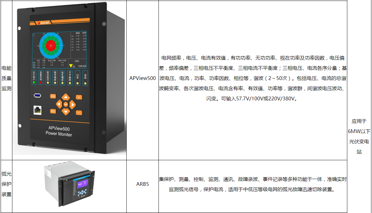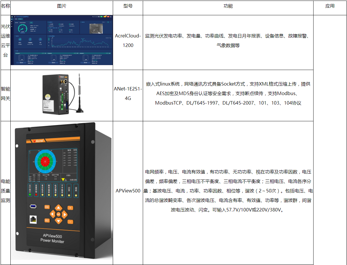 光伏电站并网点需要监测并网点电能质量,包括电源频率、电源电压的大小、电压不平衡、电压骤升/骤降/中断、快速电压变化、谐波/间谐波THD、闪变等,需要安装单独的电能质量监测装置。