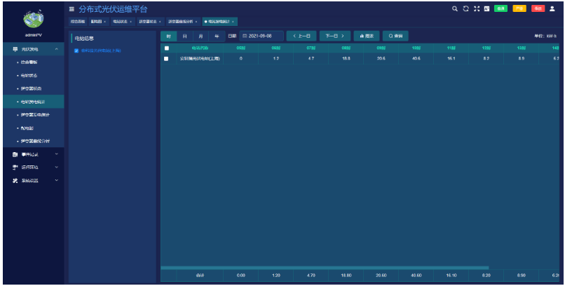 ●统计当前光伏电站的日、月、年发电量及发电收益。