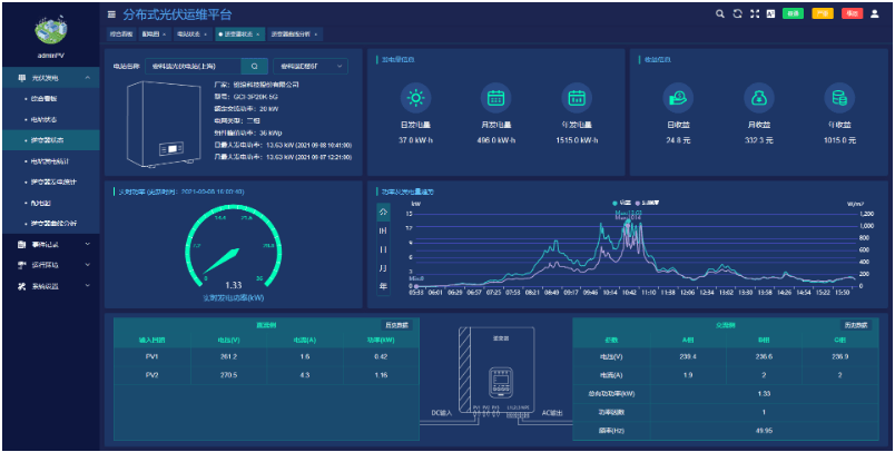 ●电站状态展示当前光伏电站发电功率,补贴电价,峰值功率等基本参数。