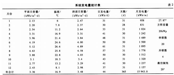 系统发电量统计如表2所示。