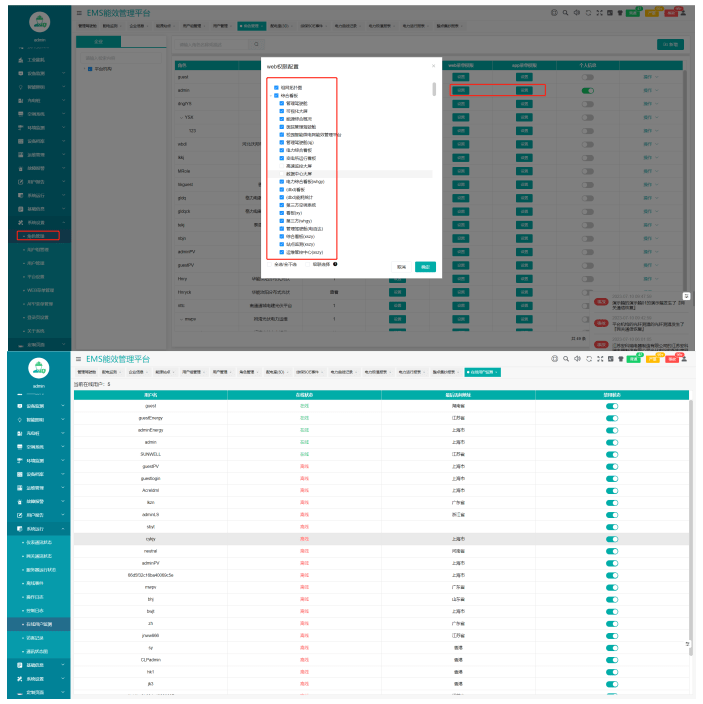 a)权限设置:登录权限、场站权限、功能权限、数据权限;