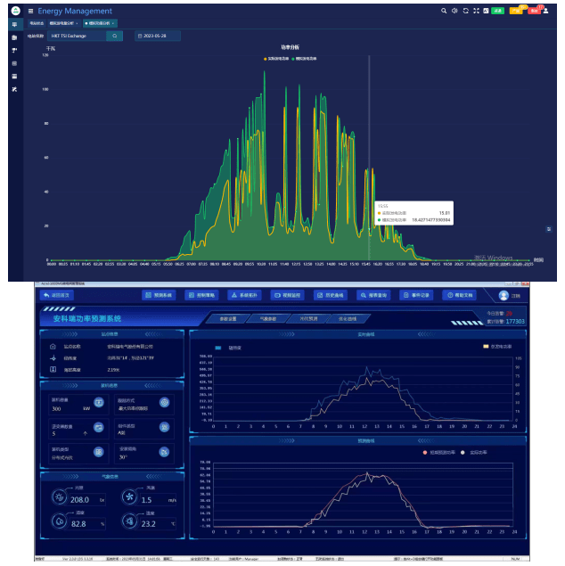 运维主站可根据当日光照和温湿度数据预测光伏电站发电功率数据进行对照,用于验证光伏电站发电效率。