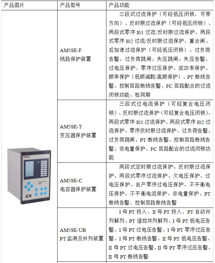 针对中原科技城智慧能源站配电工程中不同对象配置不同微机保护装置,其中,进线柜配置AM5SE-F线路保护装置,PT柜配置AM5SE-UB PT监测及并列保护装置,配电变压器柜配置AM5SE-T变压器保护装置,母联柜配置AM5SE-B备自投保护装置,电容出线柜配置AM5SE-C电容器保护装置,电机出线柜配置AM5SE-M电动机保护装置,这几款微机保护装置主要通过以下保护功能实现对高压柜的设备运行情况实时监视和保护: