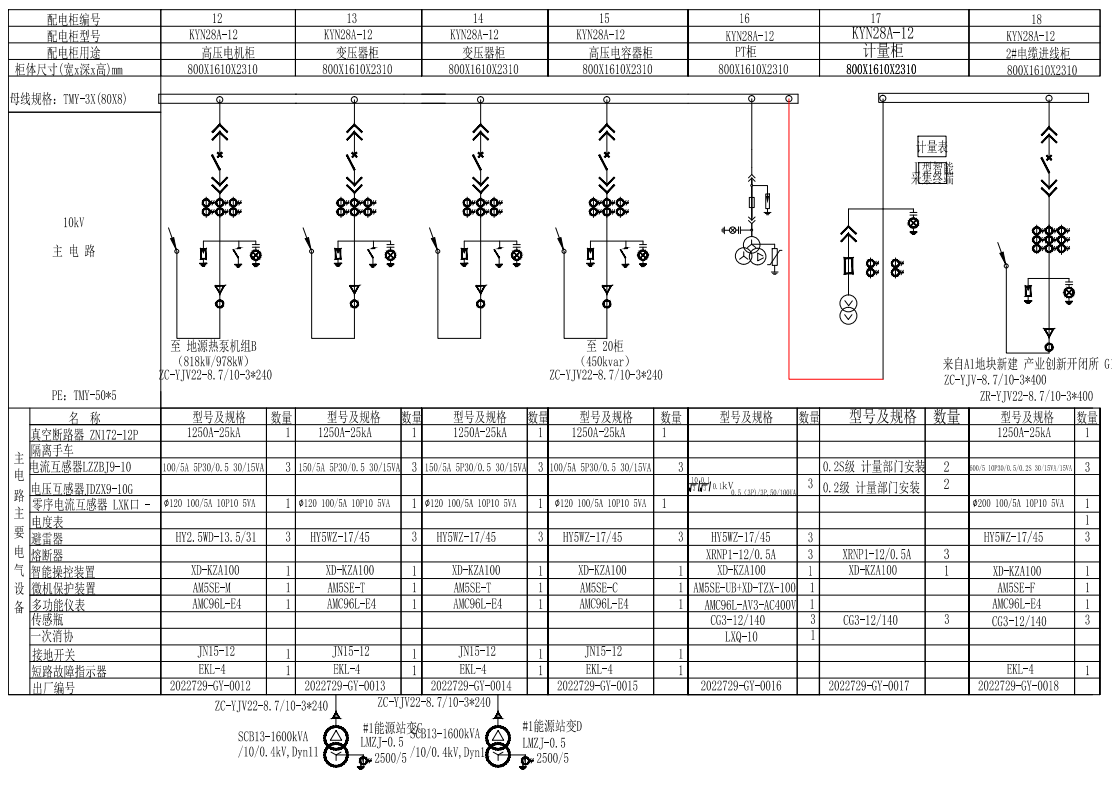 本项目为综合智慧能源A1和A4能源站10kV项目,项目地处于中原科技城核心起步区内,每个进线来源均为产业创新开闭所。进出线柜分别采用电缆上进线和上出线的方式,并采用KYN28-12型金属铠装手车式真空开关柜。两个能源站均为两进线一母联的供电系统,并带有多个变压器、电动机、电容器的出线回路。