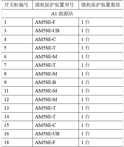 A1和A4能源站10kV配电工程所设微机保护型号与数量如下: