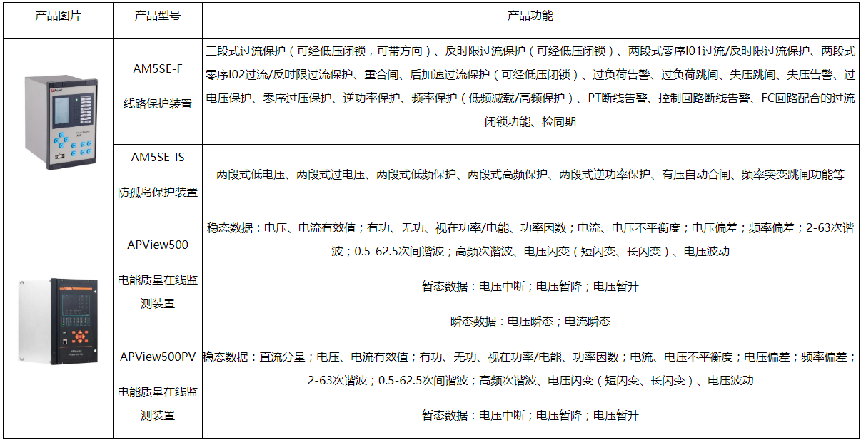 该项目为沼气发电,“自发自用、余电不上网",故在进线柜配置AM5SE-IS防孤岛保护装置,实现逆功率保护、失压保护功能,并与本段发电并网柜实现电气联锁;配置APView500电能质量在线监测装置监测电网侧电能质量是否正常,如电压闪变、电压中断、电压暂降等。在并网柜配置AM5SE-F线路保护装置,实现过流、零流等保护功能,并与本段进线及母联柜实现电气联锁。在发电机柜配置APView500PV电能质量在线监测装置监测发电侧电能质量情况,如谐波、电压偏差、频率偏差等。当供电系统上产生逆功率、失压、过流等故障及电能质量异常现象时,保护装置和电能质量监测装置都会及时反馈。