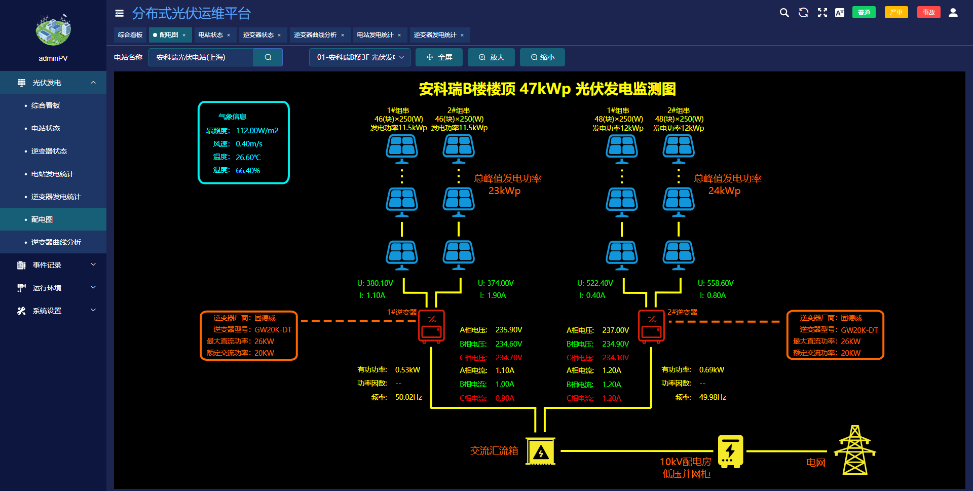 ●实时展示逆变器交、直流侧的数据。