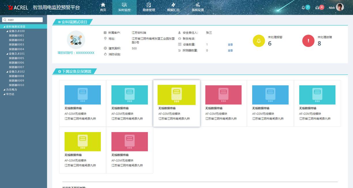 1、点击“设备详情"后在弹出界面显示项目识别号、监控设备号、省、市、区县、详细地址