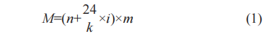 式中:M-每天的数据大小;n-每日采集指标的个数,个;i-实时采集指标的个数,个;k-采集频率,min;m-每个采集指标的单条数据传输时的大小。