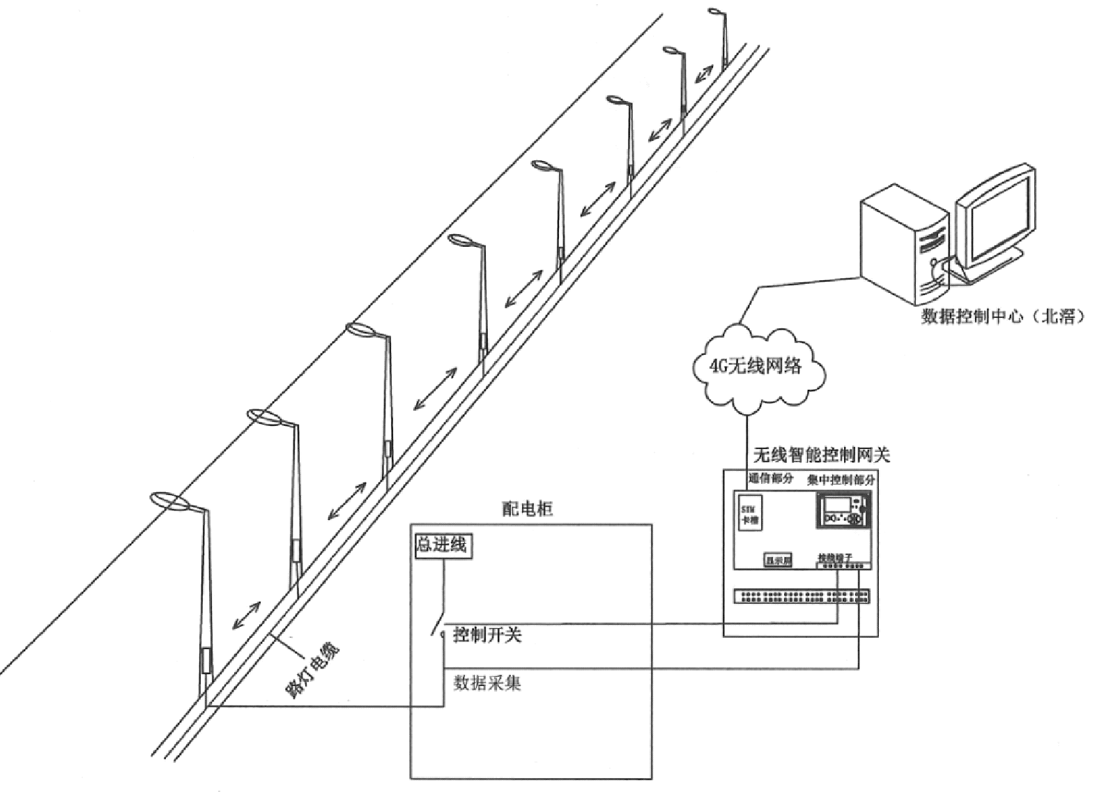 (5)良好的拓展能力和应急能力。照明智能控制箱设备内置4G智能链路传输功能(支持国内移动/联通/电信三大运营商),方便客户进行远程监控和操作,采集报警信息,且具备良好的功能拓展能力,可随时更换5G通信模块。所提供的无线宽带可在紧急情况下作为应急数据传输通道,为临时卡点传输视频、语音、数据等信息,为应急工况下提供可靠的无线宽带通信保障。