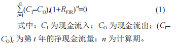 盈利能力判定指标由项目资本金内部收益率体现。即在拟定的融资方案下,从项目资本金出资者整体的角度,确定其现金流入和现金流出,编制项目资本金现金流量表,利用资金时间价值原理进行折现,计算项目资本金内部收益率RFIR[6],计算式为: