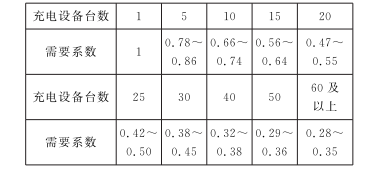 注:表中充电设备台数是按同一单相所接交流充电桩数量计算,采用三相配电时,表中充电设备台数应乘以 3 。计算容量 Sj =Kt*Kx*式中:Kt-同时系数,一般取 0 .8 ~ 1 .0 ,根据广州市供电局要求,可取 0 .8 ;