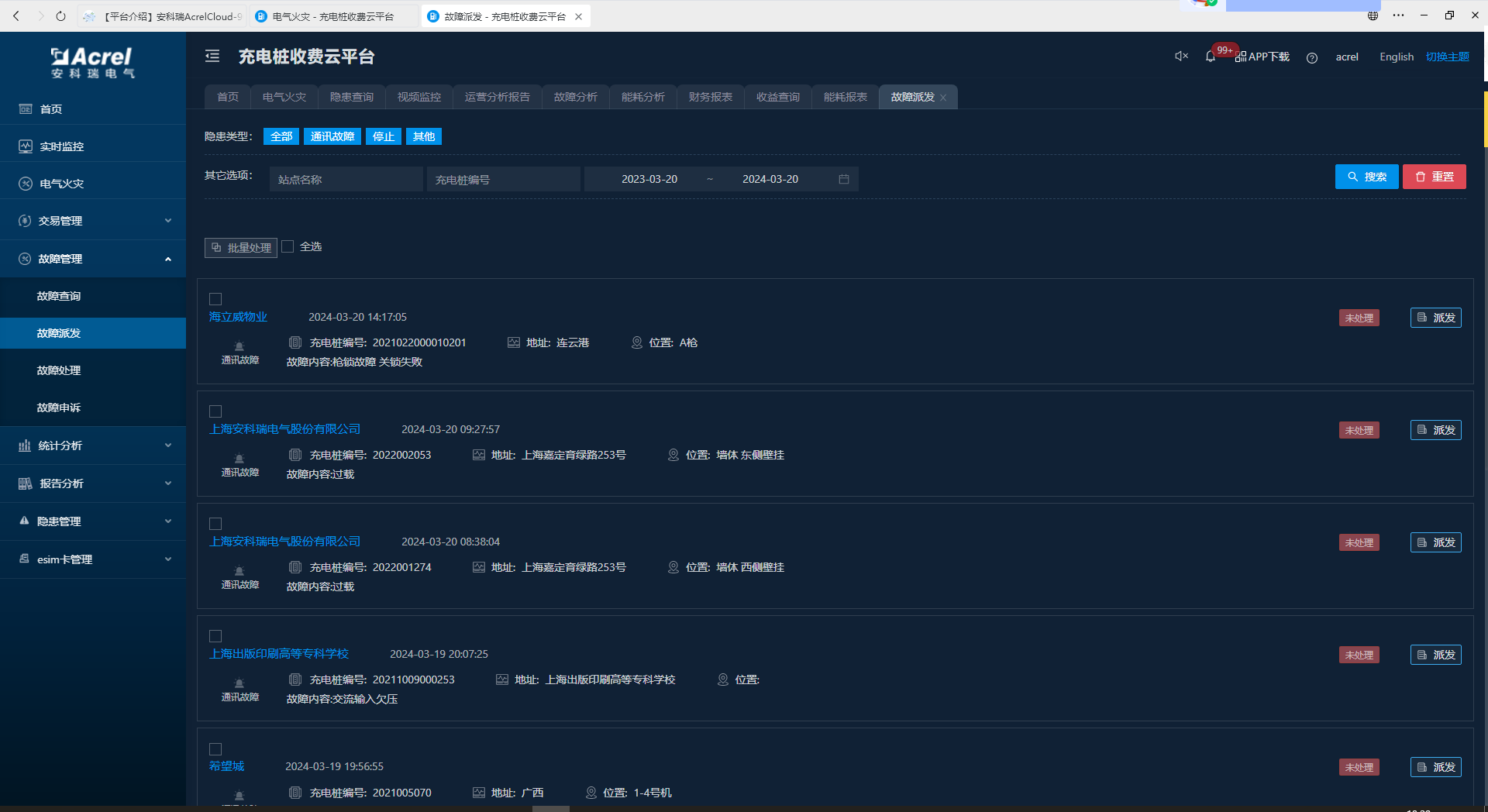 故障派发中记录了当前待派发的故障信息。如图所示: