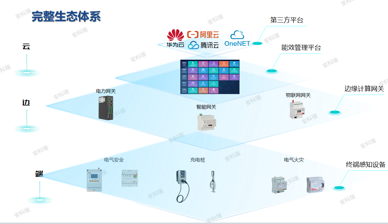 平台采用分层分布式结构,主要由终端感知设备、边缘计算网关和能效管理平台层三个部分组成,详细拓扑结构如下: