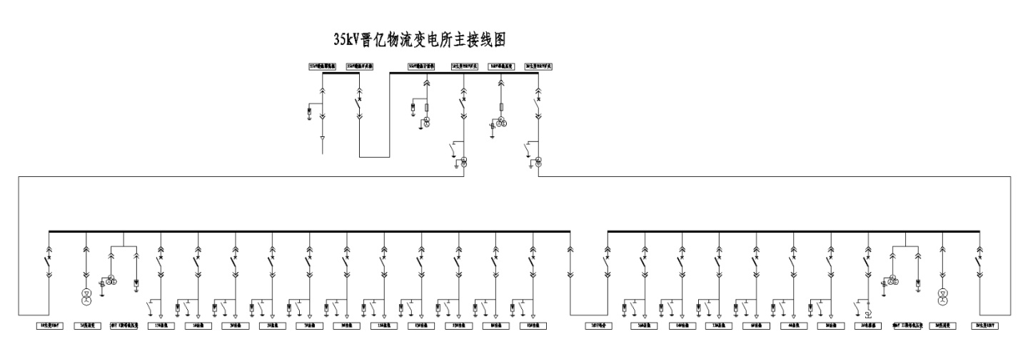 晋亿实业股份有限公司厂区内建设有35kV配电房1座,变压器2台,1#主变容量12500kVA,2#主变容量5000kVA,10kV采用单母分段接线模式。