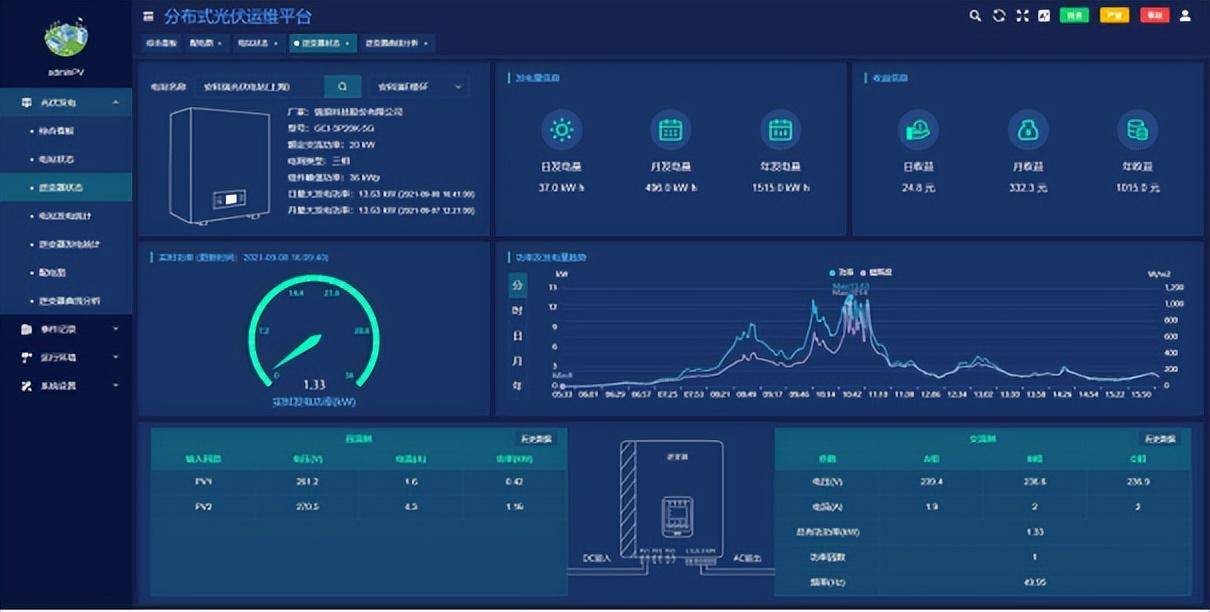 能源已经成为决定当今社会发展的关键因素。一个国家能否高效、合理的利用随处可见的新能源,直接决定着这个国家未来的发展方向。太阳能作为新能源中不可忽视的重要一员,逐渐走入大众视野。其具有显著特点主要包括清洁、无污染、易获得。正是这些显著的特点使得太阳能的使用逐步流行,并发展成为新能源领域中的一种趋势。应运而生的光伏发电站充分利用太阳能的优势,针对光伏电站行业进行数据采集、数据可视化及数据分析,着力于为光伏设备安装商、运营商及民用商、光伏用户提供线上工具支持;为光伏电站投资人提供数据参考,降低投资风险。同时光伏发电站的高度智能化也使得设备的检查变得简单,由最开始的安排人员现场检查逐步变成自动化检查,较大程度提高人力物力,提高检查效率。