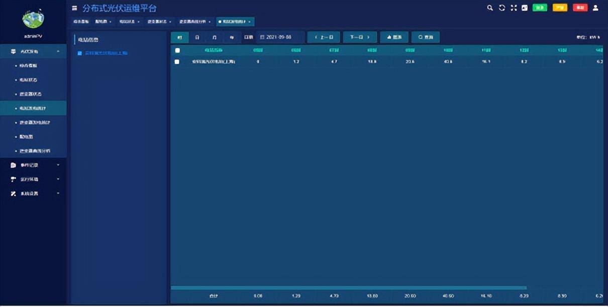 ●统计当前光伏电站的日、月、年发电量及发电收益。