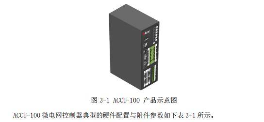 ACCU-100 微电网协调控制器是一种应用于微电网、分布式发电、储能等领域的智能协调控制器。装置满足系统满足光伏系统、风力发电、储能系统以及充电桩等设备的接入,通过对微电网系统进行全天候数据采集分析,监视光伏、风能、储能系统、充电桩运行状态及 健康状况,并在此基础上以安全经济优化运行为目标,获取控制策略进而对微电网实施调节控制,实现微电网分布式能源、储能系统、负荷的实时动态调节功能,促进新能源就地 化消纳,提高电网运行稳定性、补偿负荷波动;有效实现微电网的需求管理,提高微电网运 行效率、降低供电成本,保障微电网安全、可靠、经济运行。